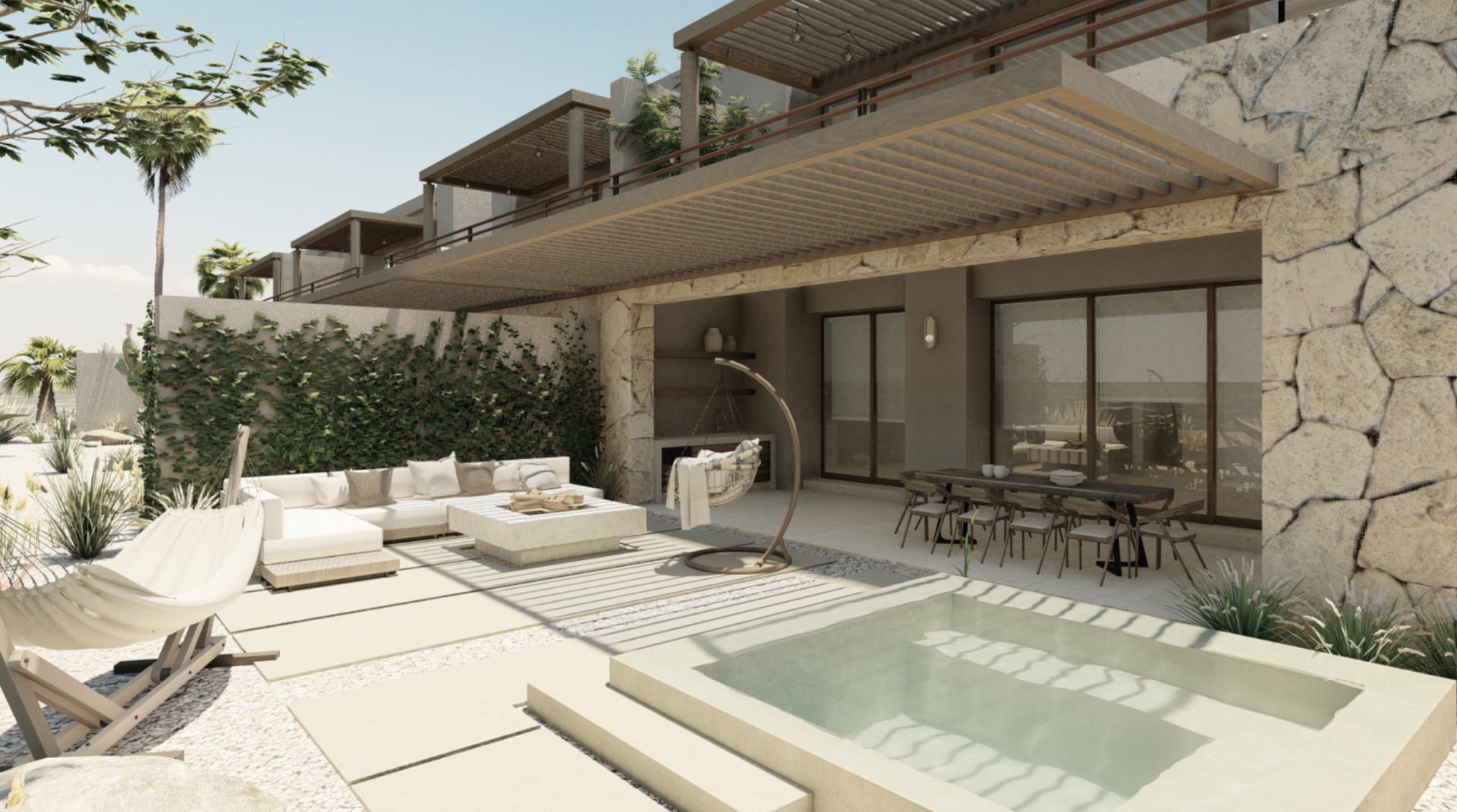 Los espacios se transforman en refugios, donde cada material y textura invitan a la conexión en el entorno.