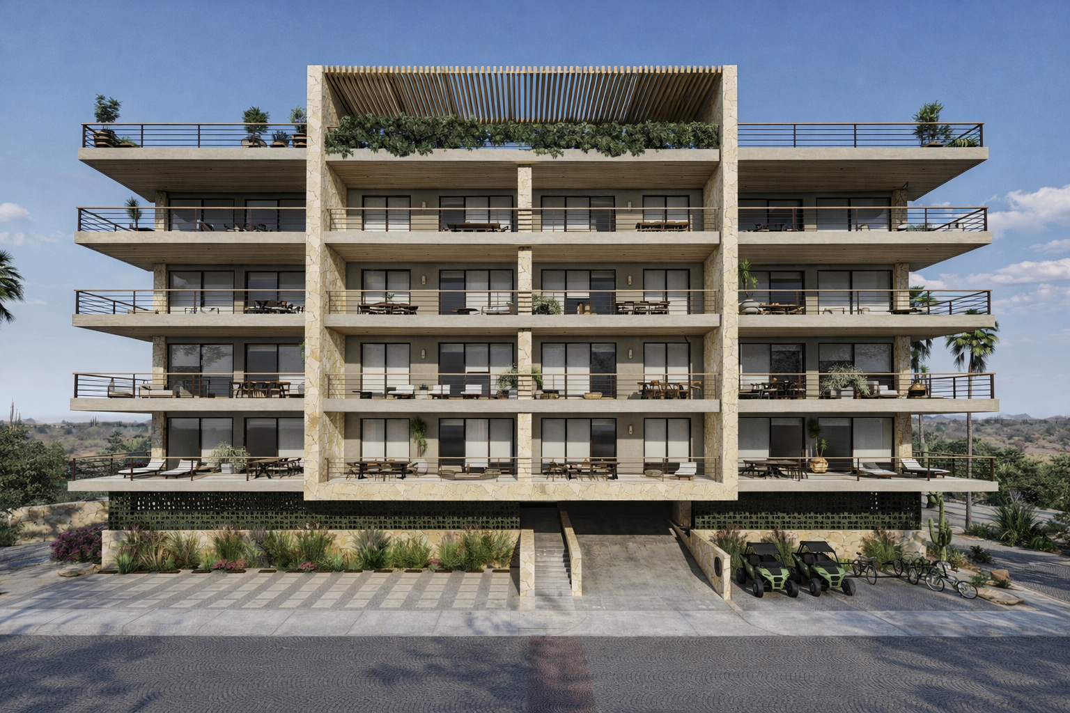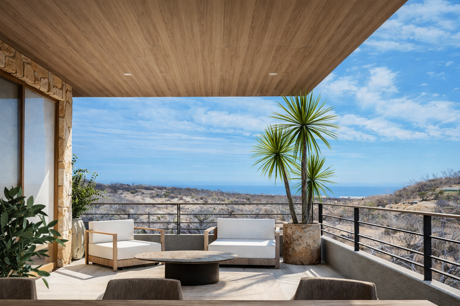 Un santuario donde la arquitectura aprovecha la luz y materiales naturales, con pasajes que guían orgánicamente a espacios que evocan tranquilidad. Un homenaje a contemplar los atardeceres infinitos hacia el mar.